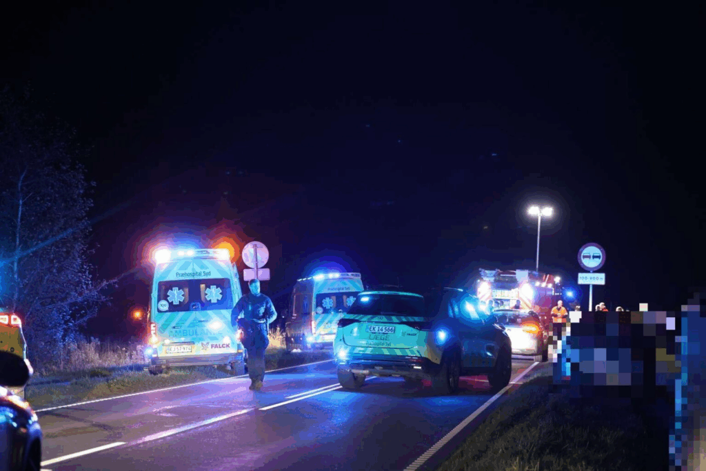 Ulykken skete på Skamlingvejen uden for Bjert, og vejen var spærret helt frem til klokken 20.30, mens politi og redningsmandskab arbejdede på stedet.