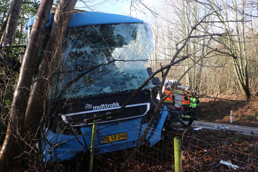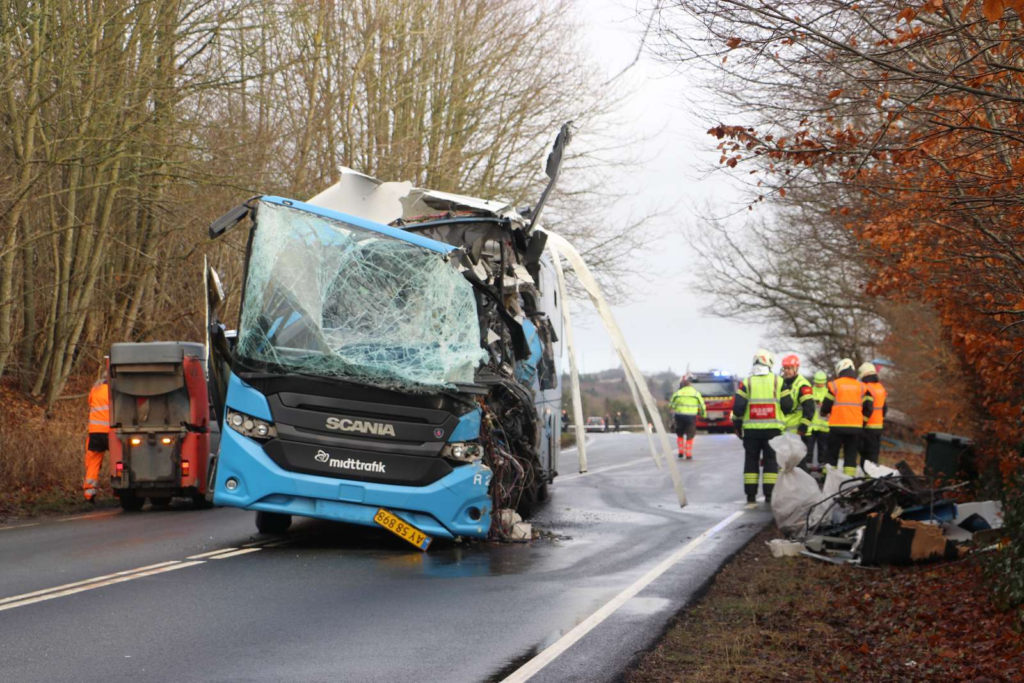 ‘Foruden de to afdøde personer er i alt otte øvrige personer – herunder de to chauffører – blevet kørt med ambulance til behandling på hospitalet for yderligere behandling og kontrol,’ skriver politiet i meddelelsen.
