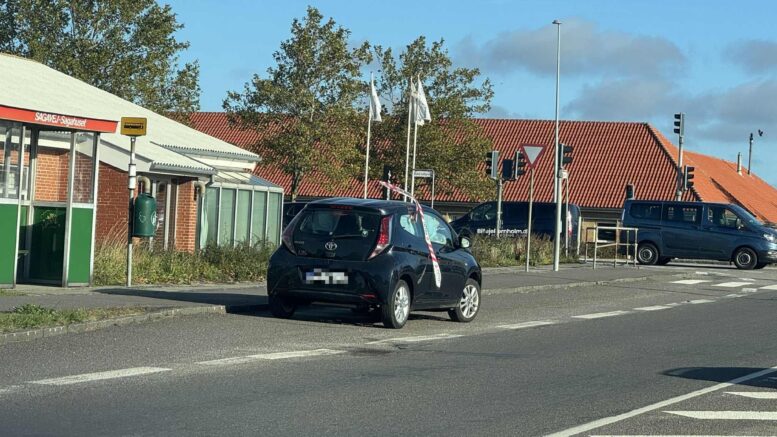 Tæt på katastrofe: Bil kører ud på togskinnerne