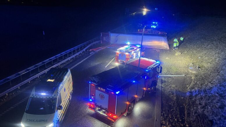Motorvej spærret til efter midnat: Lastbil ramte bro