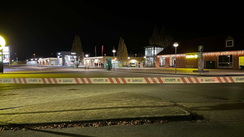 Løber rundt på parkeringsplads foran Netto og skyder