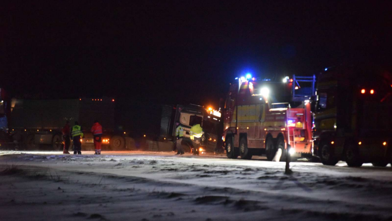 Lastbiler i voldsom kollisionsulykke: Lægerne kæmper for chauffør