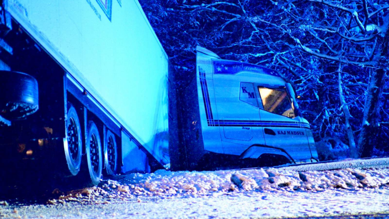 Lastbil i voldsomt uheld: ‘Hænger i luften’