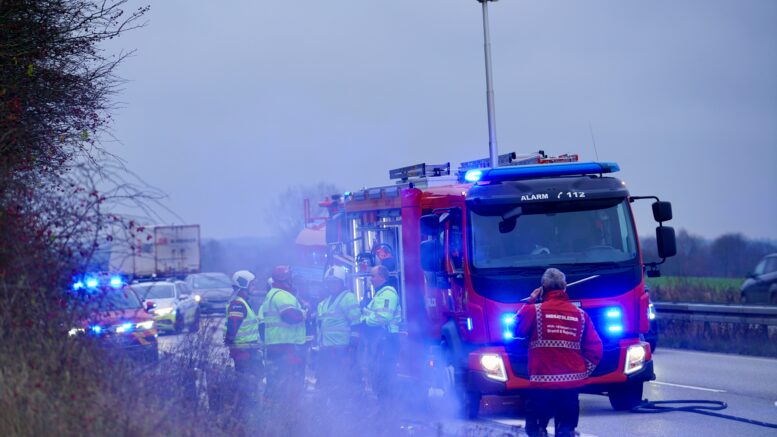 Sort røgsky stiger op fra motorvej: Bil står i flammer