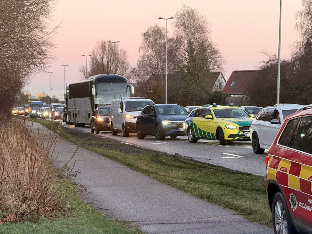 Ifølge Presse-fotos.dks udsendte er der lige nu lang kø fra Nykøbing mod Sakskøbing.