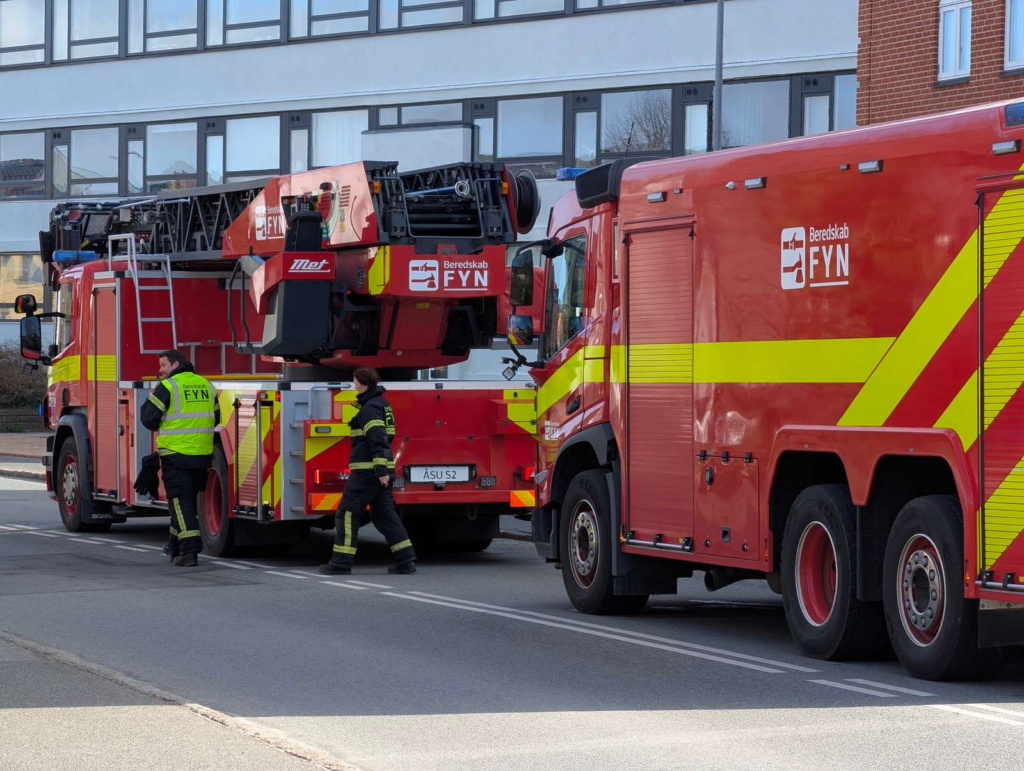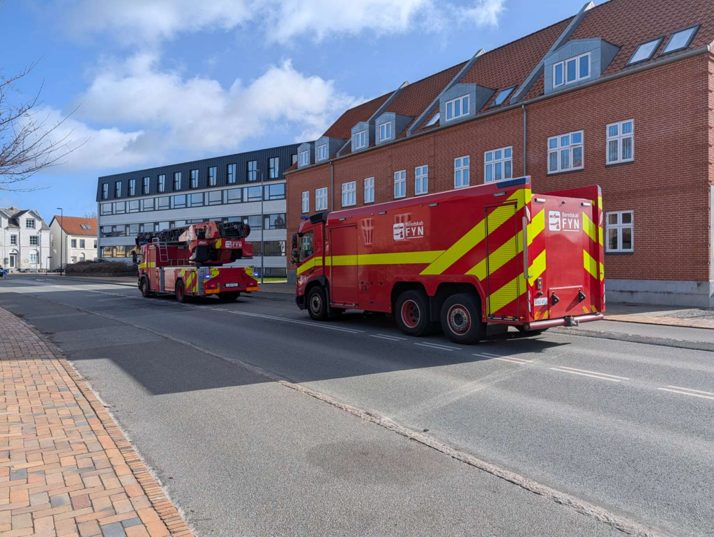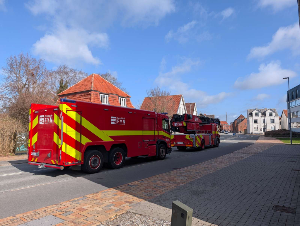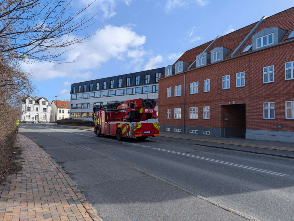 Søndag fordmiddag er brandvæsenet til stede på Kochsgade i Odense i forbindelse med meldinger om brand i en lejlighed.