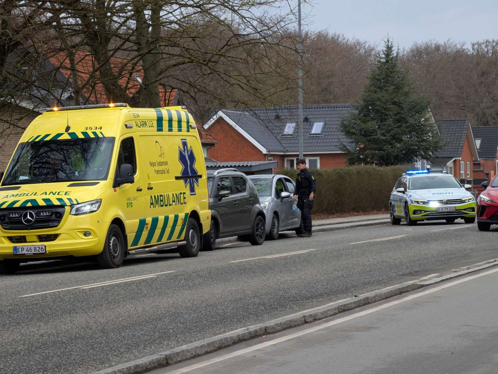 “Men det er et mindre færdselsuheld – man kan ikke se særlig mange skader på bilerne,” siger vores udsendte.