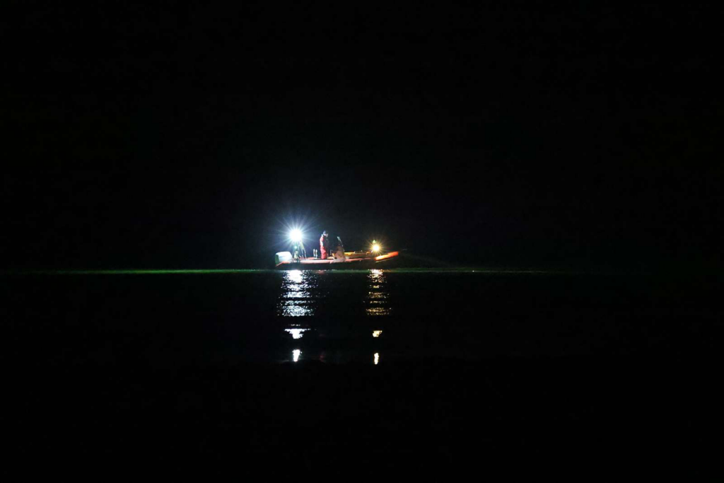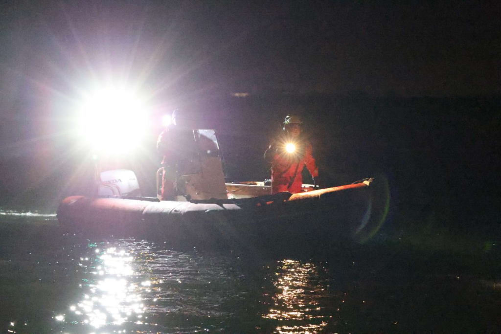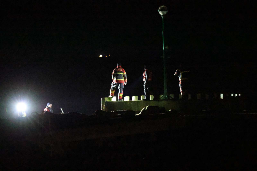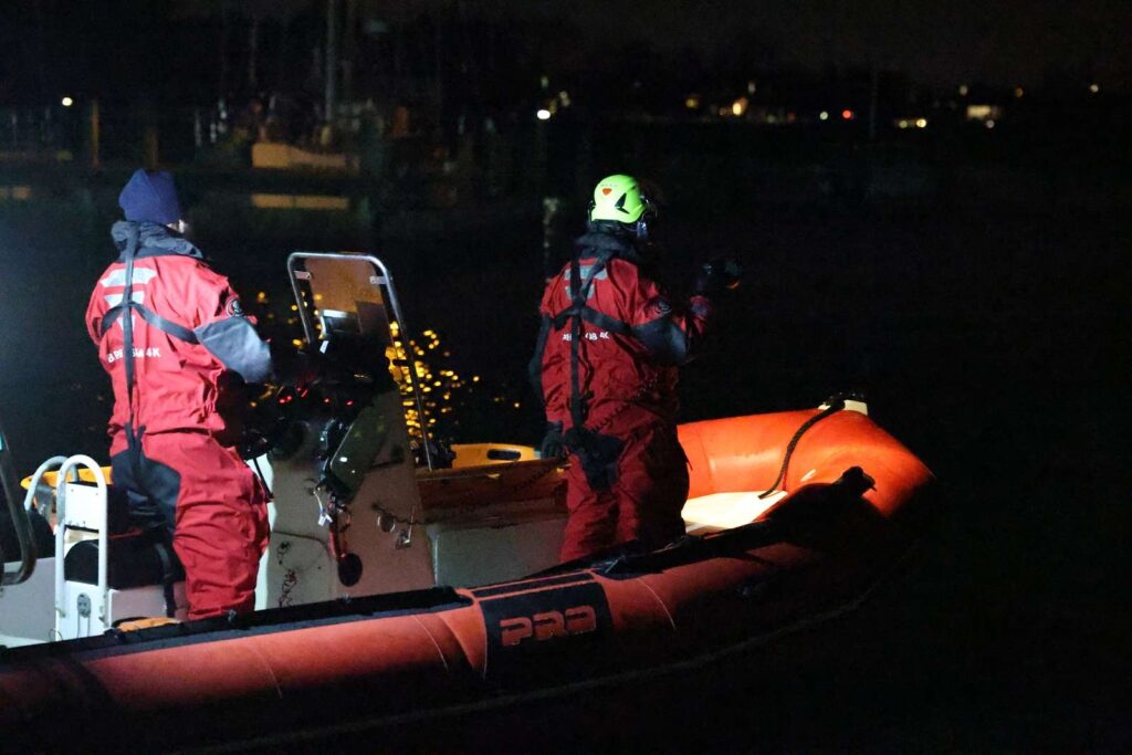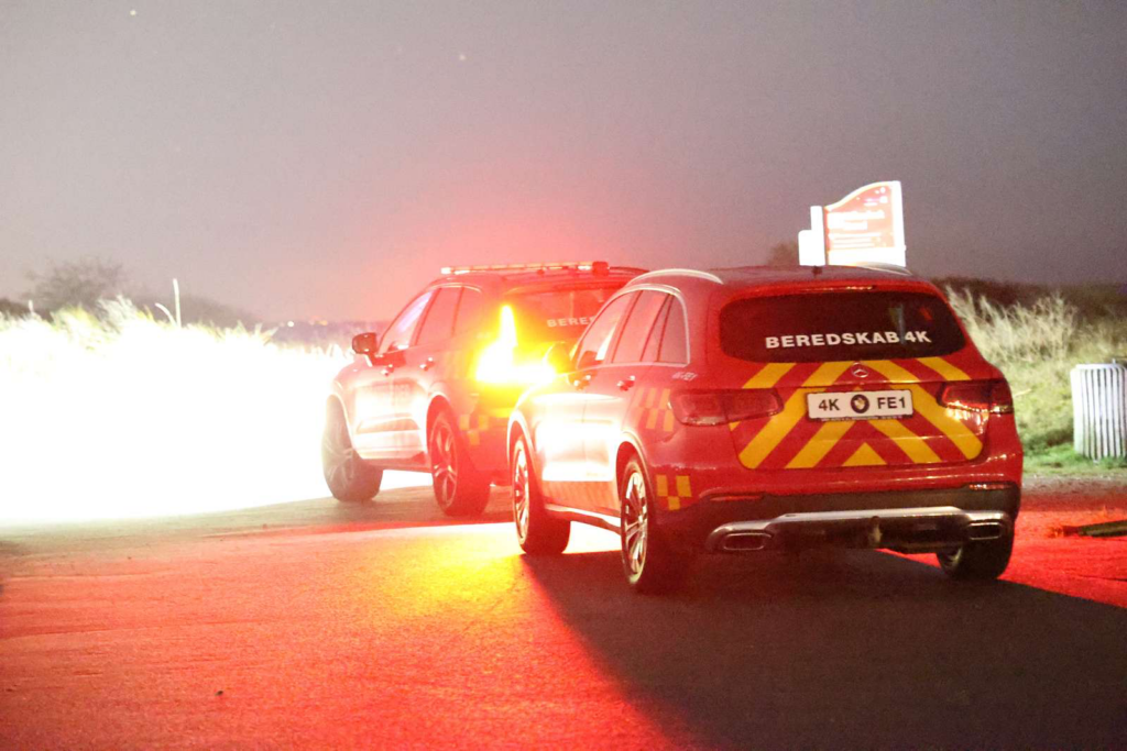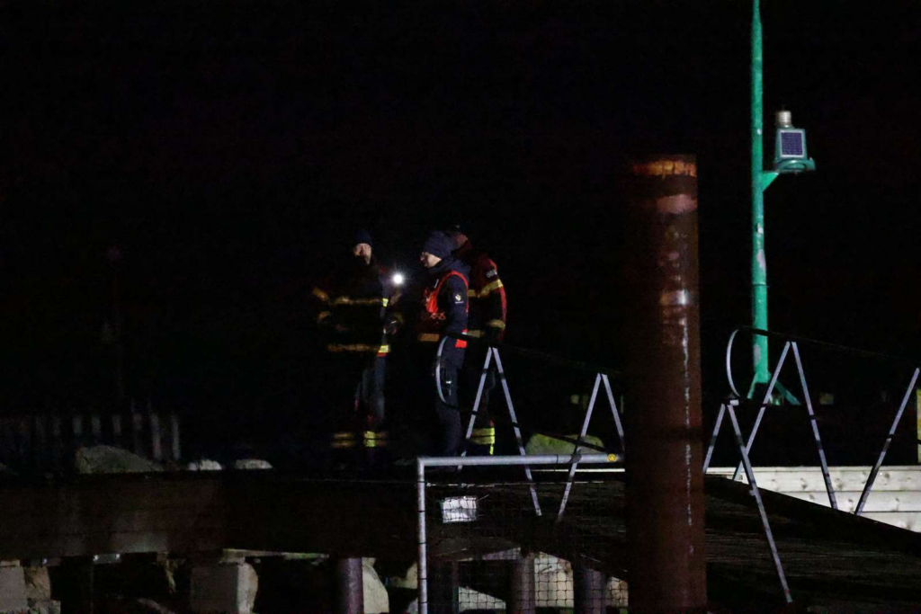 Flere udrykningskøretøjer er rykket ud til stedet, hvor beredskabsstyrelsen kan ses sejlende i en båd i havnen.