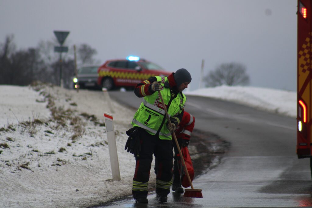 Ifølge oplysninger fra stedet ligger der en oliefilm på vejen, som kan gøre kørebanen glat.