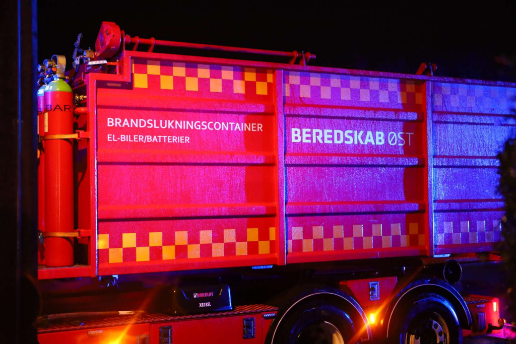 Ifølge den udsendte var Beredskab Øst blandt andet til stede med en brandslukningscontainer. Den bruges til nedsænkning af el-biler og batterier, der tager lang tid at slukke at slukke.