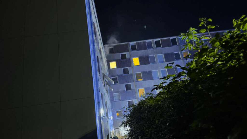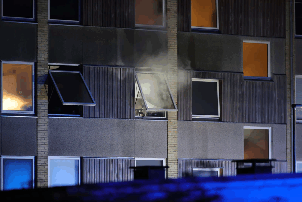 “Det ryger kraftigt fra lejligheden. Røgen strømmer ud til alle sider.”