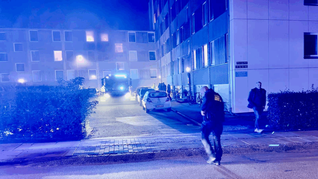 Ifølge ham var opgangen allerede evakueret, da brandfolkene nåede frem til Kaj Munks Vej i Viby, hvor branden raserer.