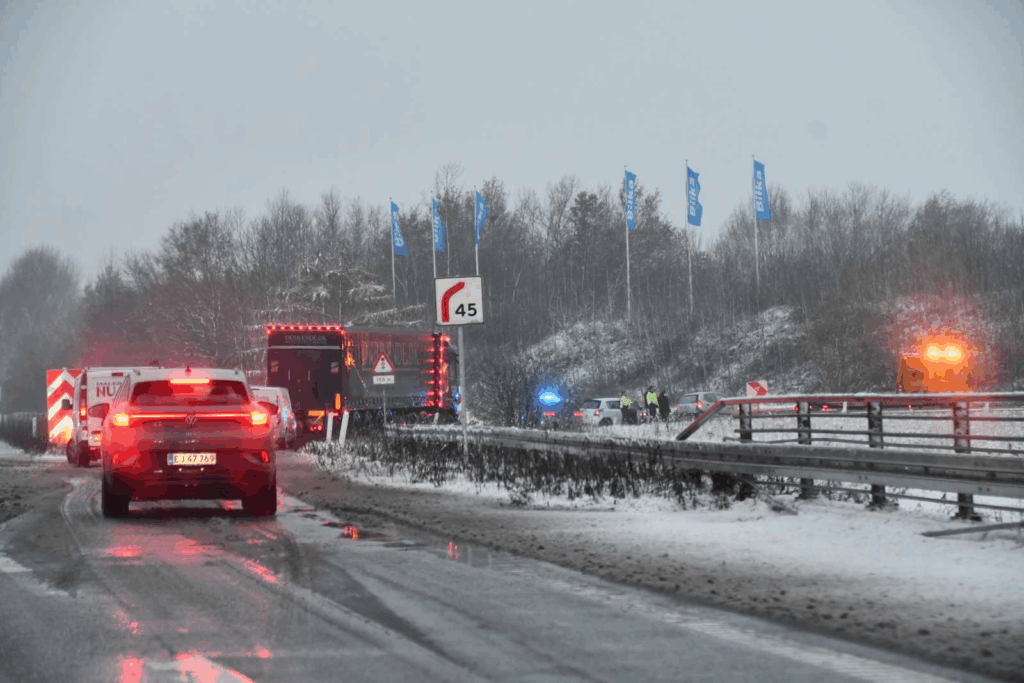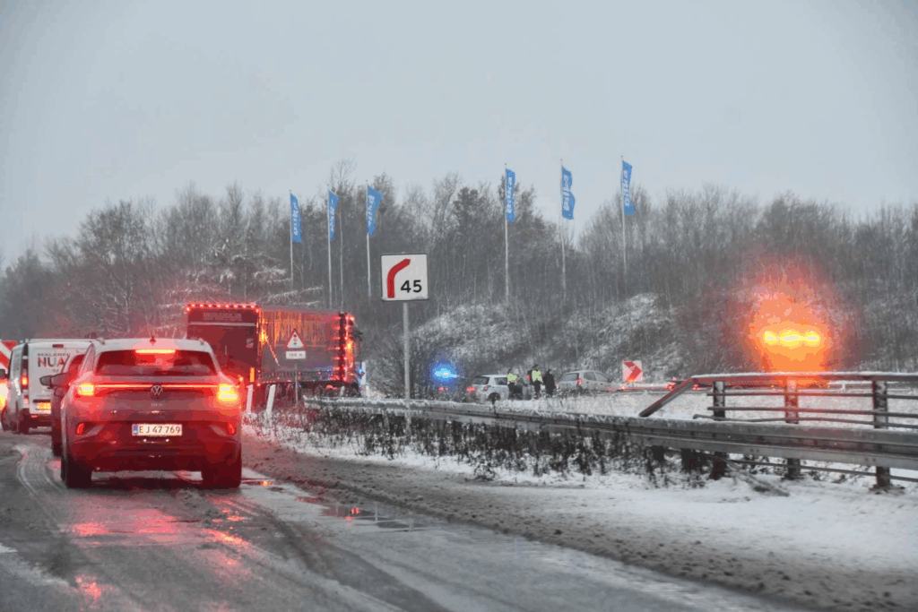 ‘Politi og redning er på stedet,’ skriver direktoratet videre om trafikhændelsen, der har medført at frakørslen er spærret.