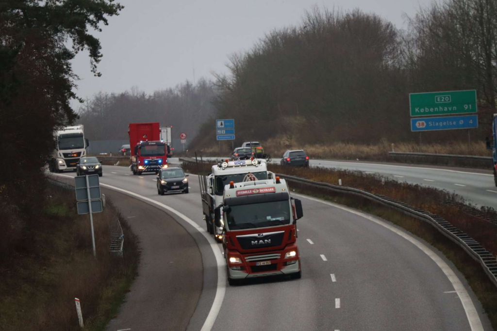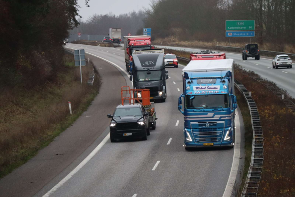 En bilist er tirsdag kommet uheldigt afsted, da han har tabt noget af sit gods på motorvejen, som lige nu skaber farlige momenter for den øvrige trafik.