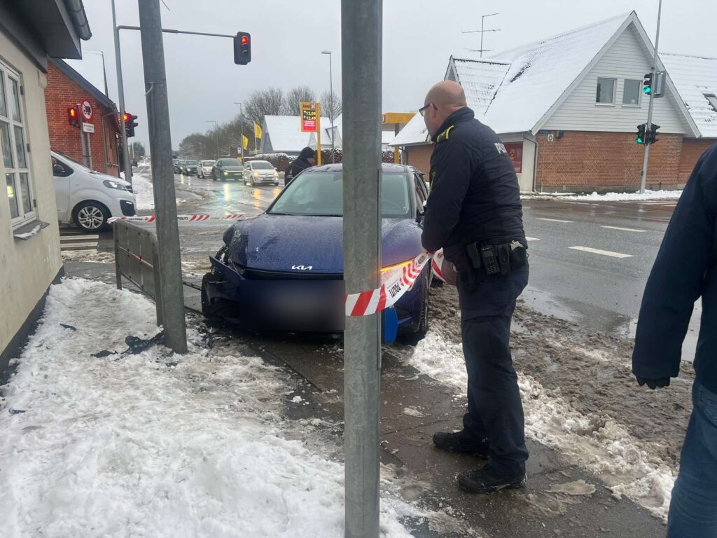 Airbags i bilen er blevet udløst, og der er lige nu afspærret på stedet.