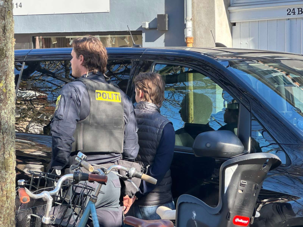 Politiet fik anmeldelsen lidt over 16, og de er stadig til stede på adressen, ligesom de vil være det resten af aftenen.