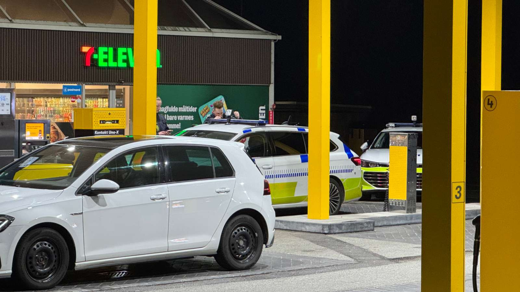 Politiet er natten til torsdag massivt til stede ved en 7-Eleven midt i byen.