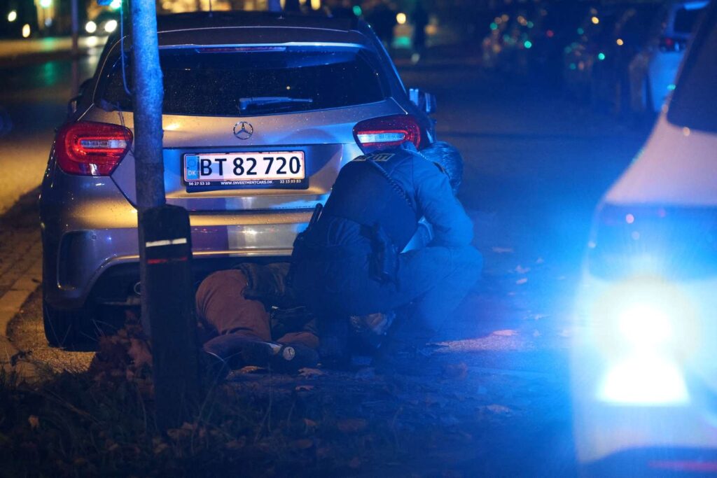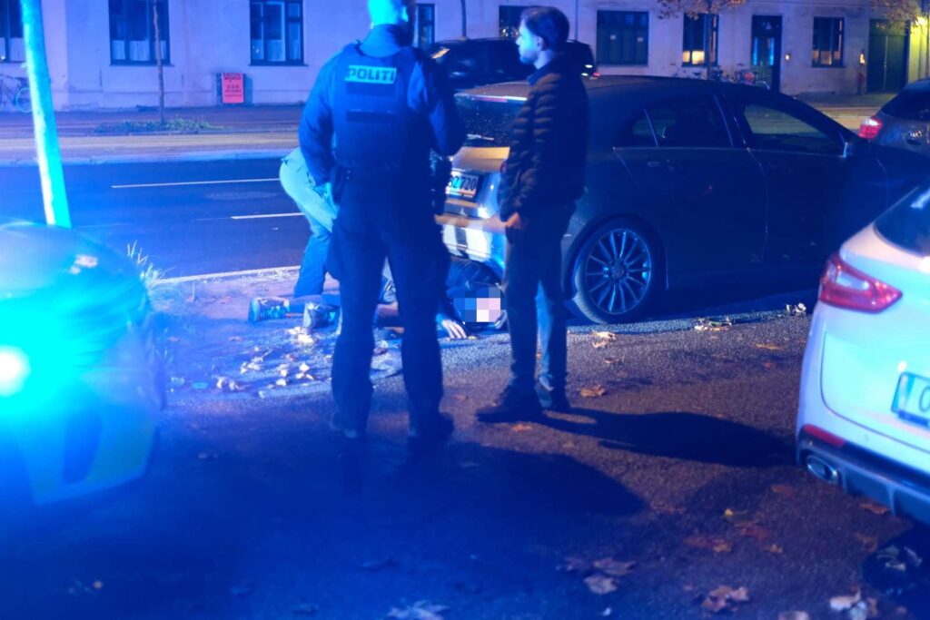 To personer lå på jorden ved nogle køretøjer, og en ambulance blev derfor tilkaldt, da den ene lå halvvejs indenunder en parkeret bil.