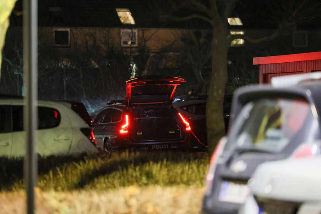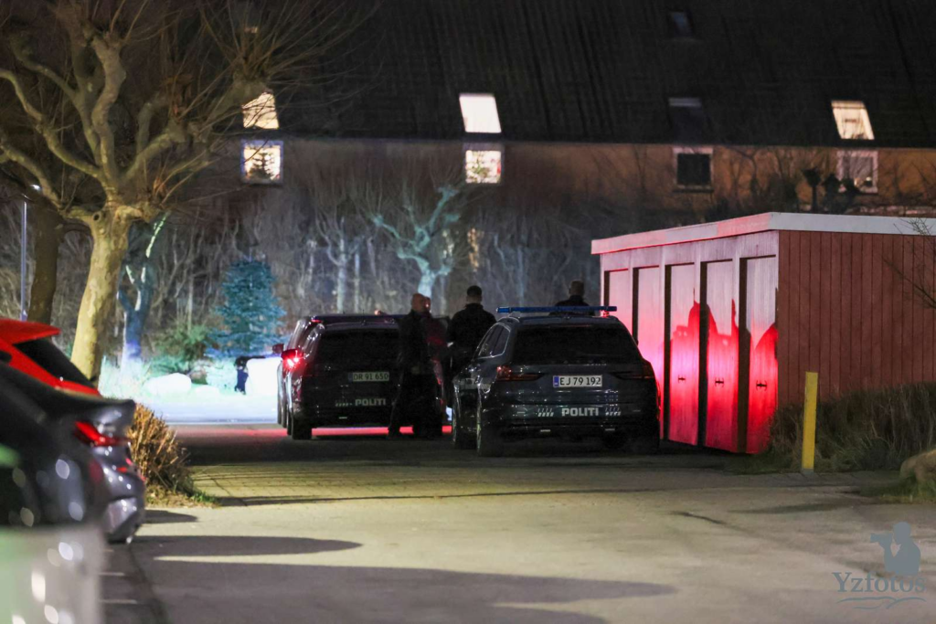Fredag aften ved 22-tiden er Østjyllands Politi til stede i flere køretøjer på en parkeringsplads på Trillegårdsvej i Aarhus.