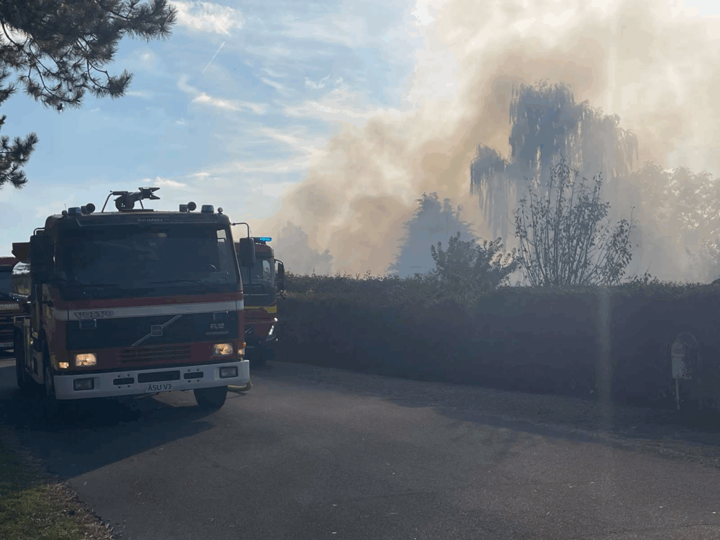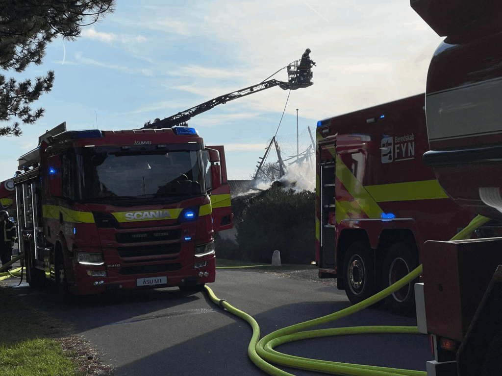 ‘Der er brand i stråtækt ejendom hvor der er kraftig røgudvikling.’