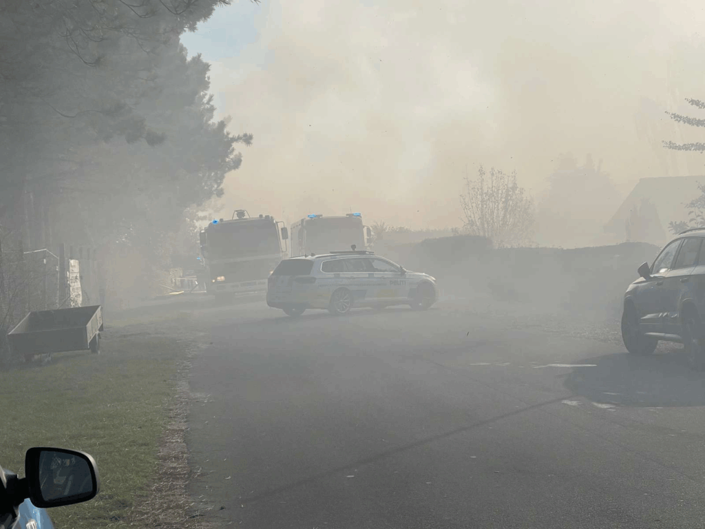 Sådan skriver politiet torsdag eftermiddag på det sociale medie X, efter man er ankommet på adressen, hvor en voldsom brand pågår.