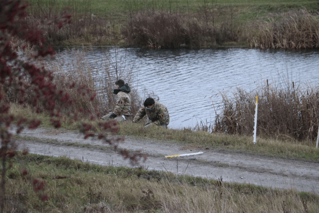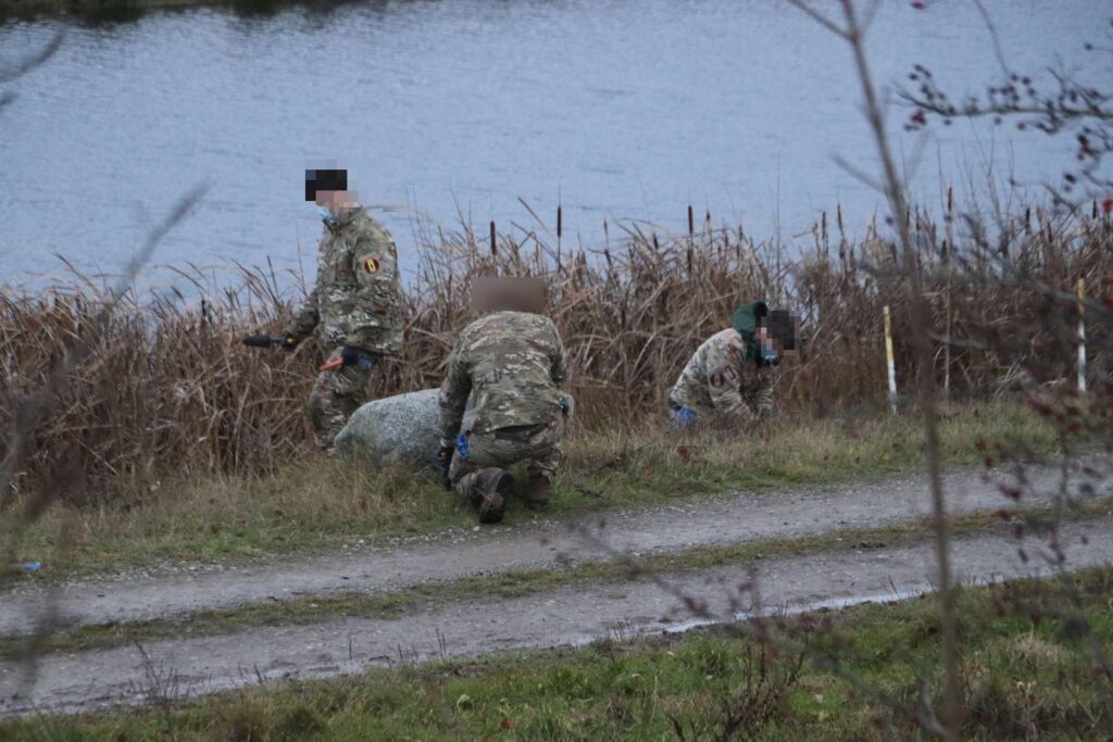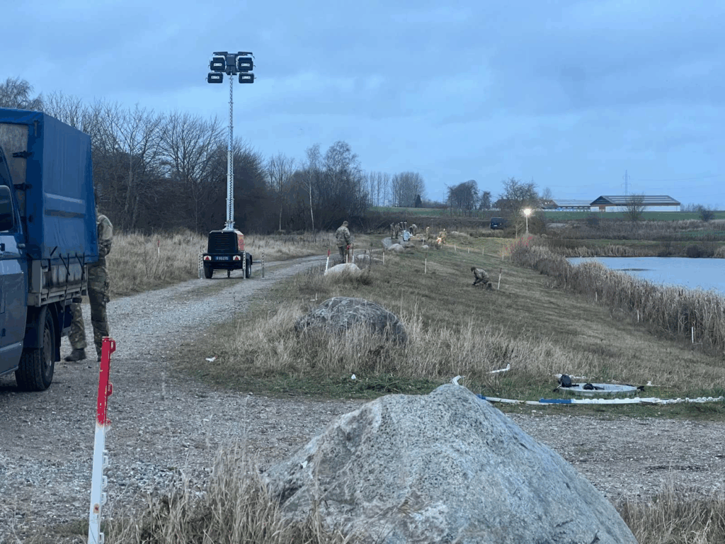 Mandag eftermiddag arbejder flere uniformerede folk ved en sø, der er afspærret af politiets afspærringsbånd. På stedet er både Beredskabsstyrelsen og Forsvarsministeriet til stede. I samme område blev der tidligere i år fundet en død mand.