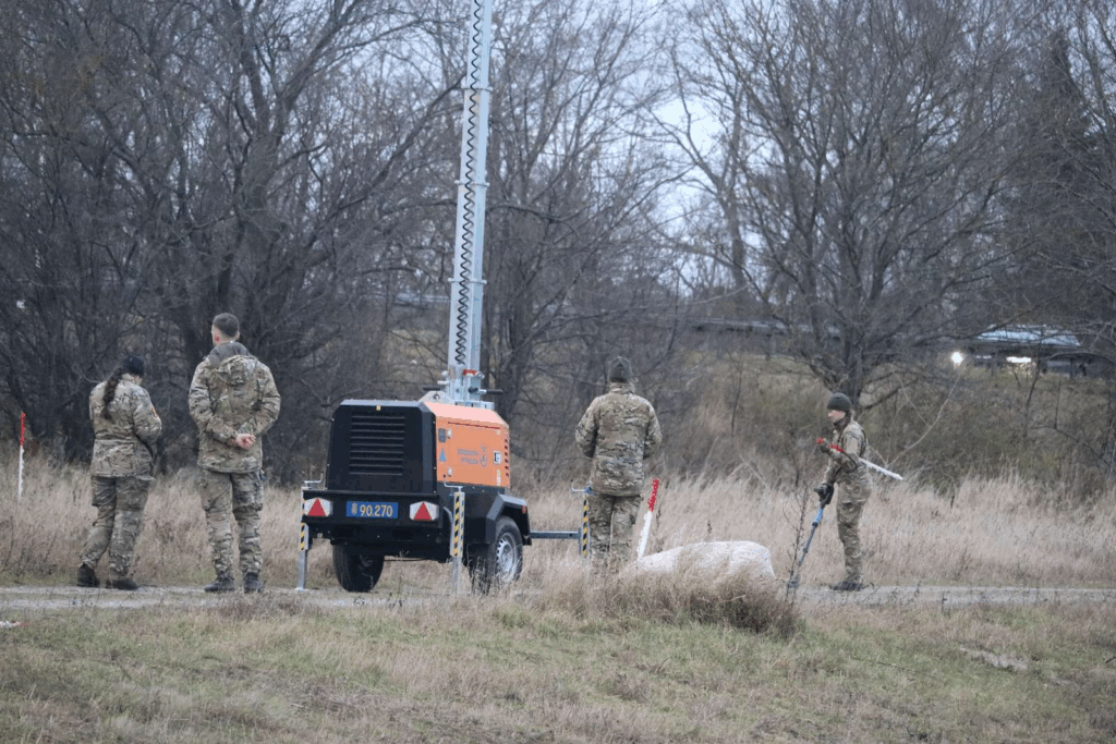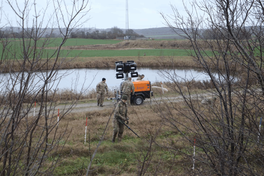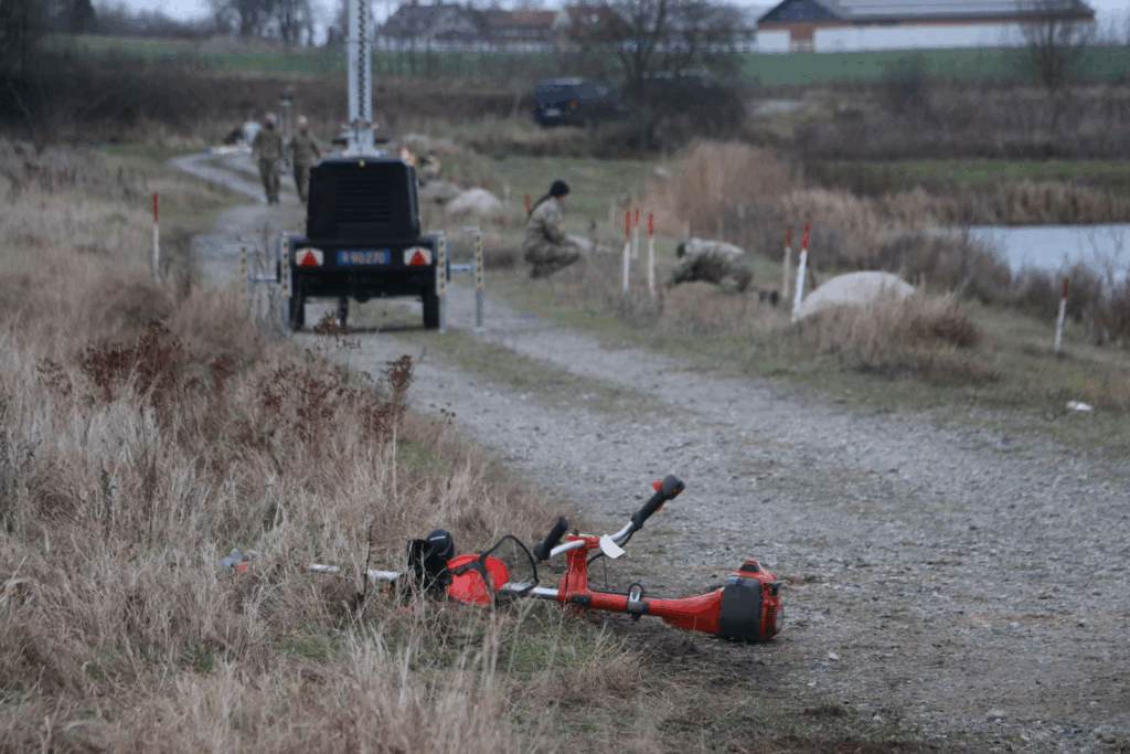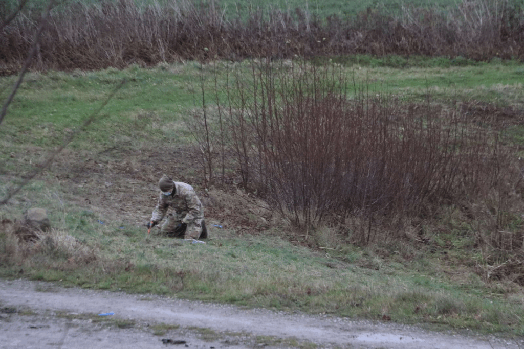“De går rundt med metaldetektorer. Der er afspærret og de har markeret områder med pinde, hvor det ligner, at de skal grave.”
