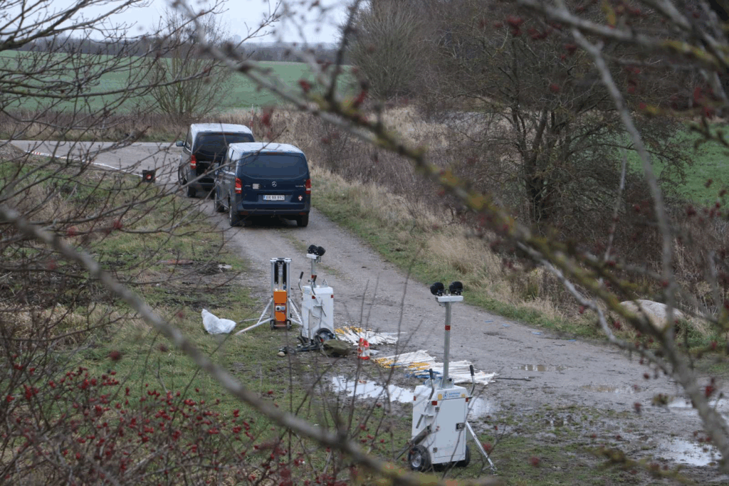 Billeder fra stedet viser hverken betjente eller politikøretøjer, men derimod køretøjer fra Beredskabsstyrelsen og Forsvarsministeriet.