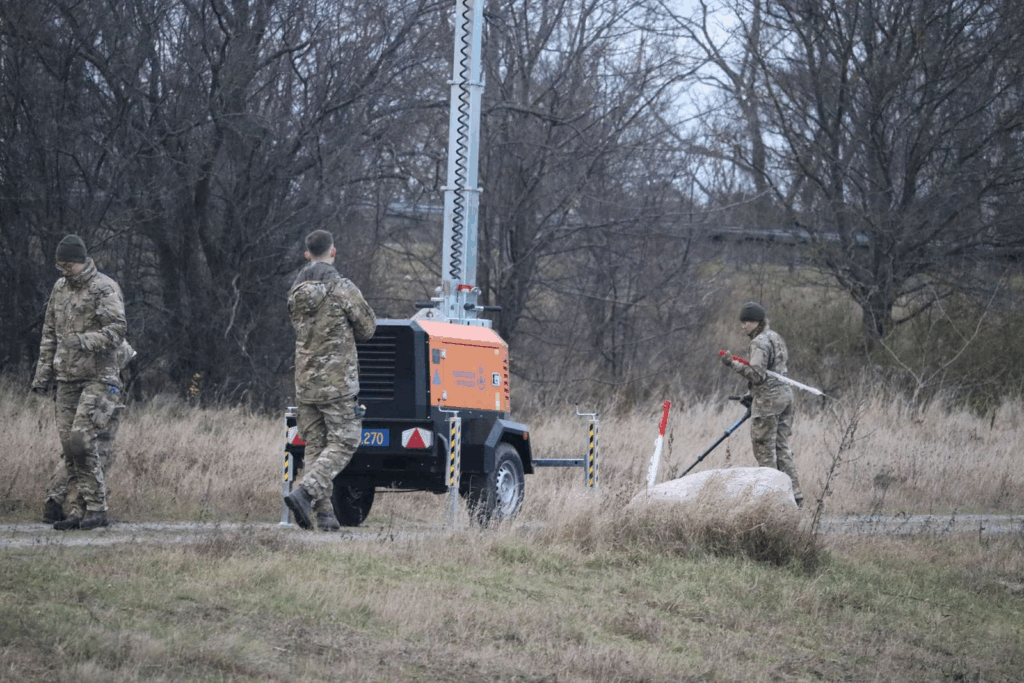 Her ses køretøjer fra henholdvis Forsvarsministeriet og Beredskabsstyrelsen – du kan se en video fra området øverst i artiklen.