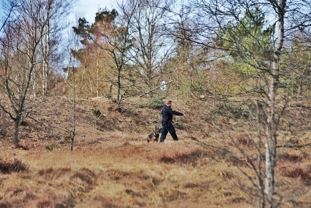‘Politiet har søndag aften indsat hundepatruljer og en helikopter til at lede efter en forsvundet kvinde.’