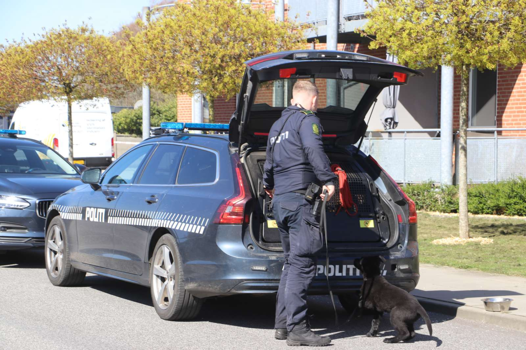 Her var de til stede med hunde, og betjente var tungt bevæbnede, efter at en 24-årig mand blev skudt ved et pizzeria. Presse-fotos.dks udsendte berettede om, at politiet var massivt til stede i mange timer.