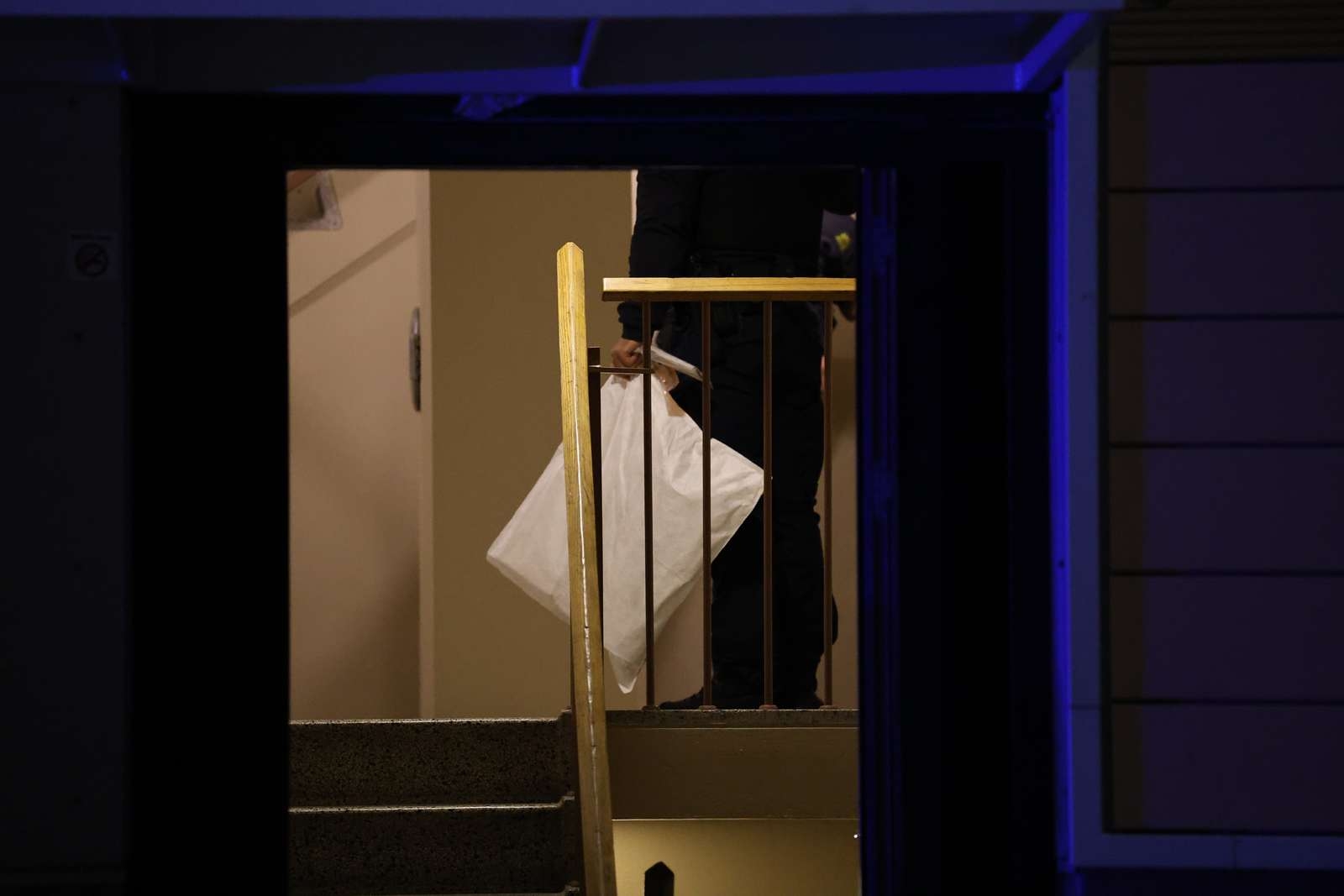 Flere patruljer var fremme på stedet, hvor betjentene blev set gå ind og ud af en opgang med bevisposer i hænderne.