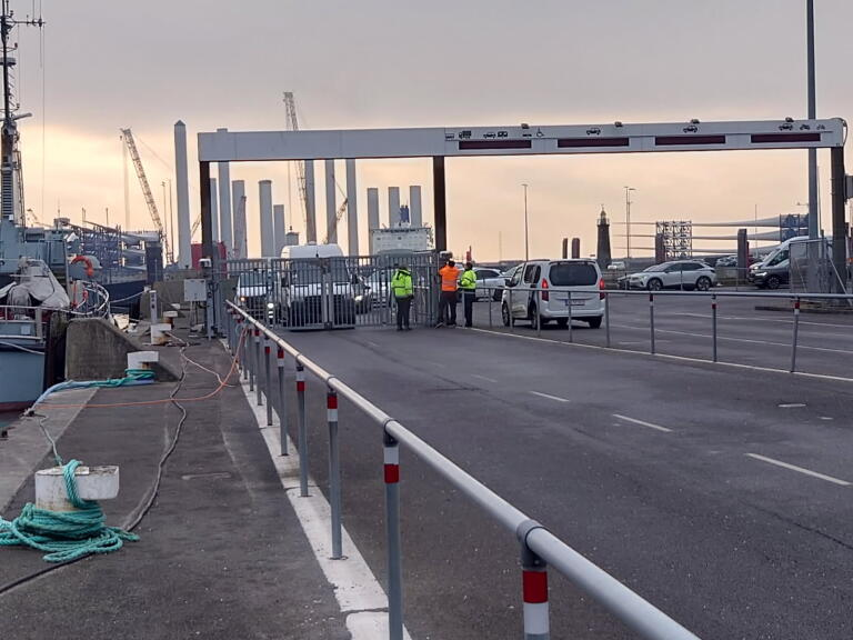 Ifølge Presse-fotos.dk’s udsendte er der også store problemer på Rønne Havn. Her har man problemer med at få åbnet portene, så bilerne kan komme ud.