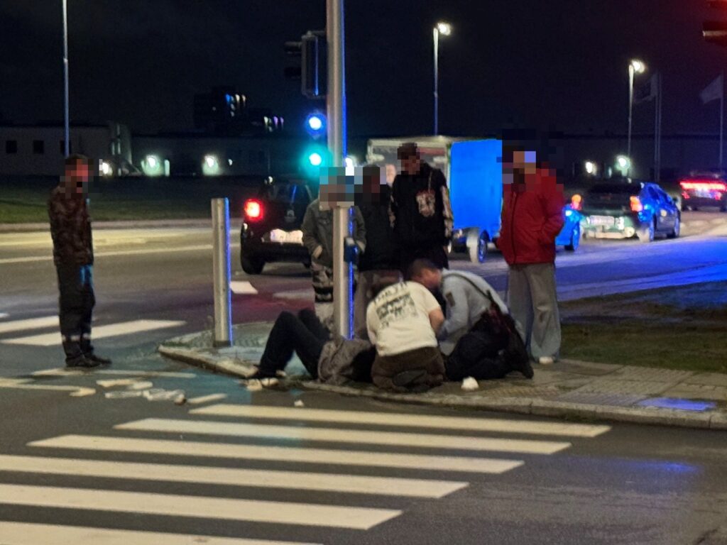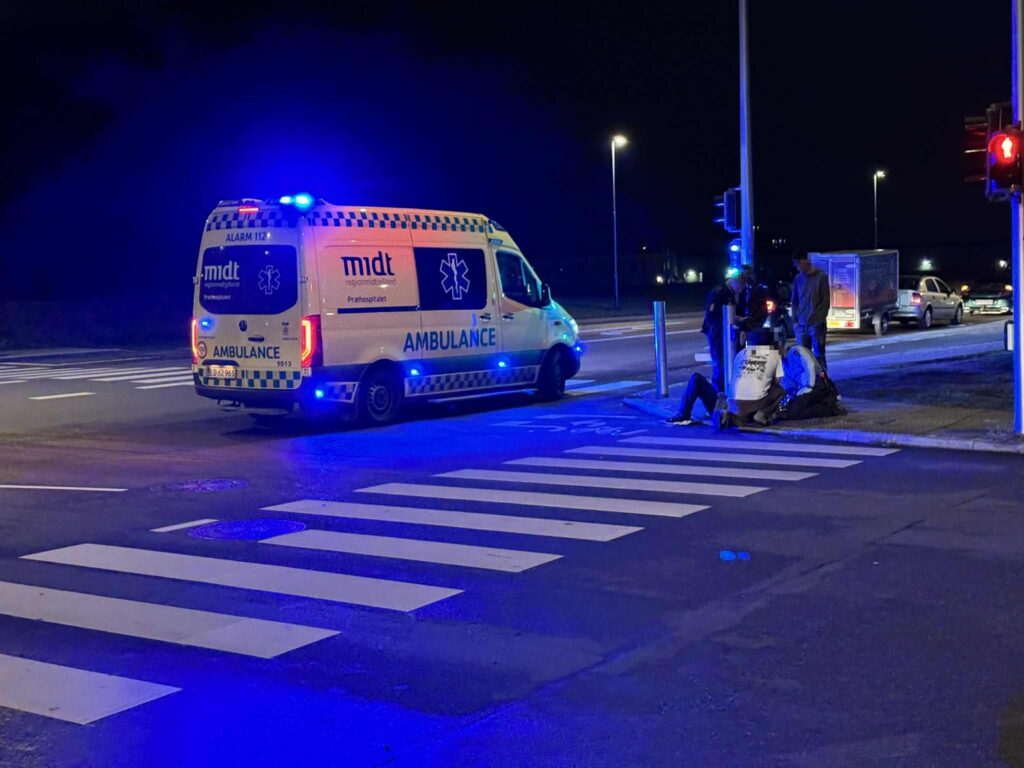 Ifølge Presse-fotos.dks fotograf er den tilskadekomne tydeligt forslået og bløder fra hovedet.