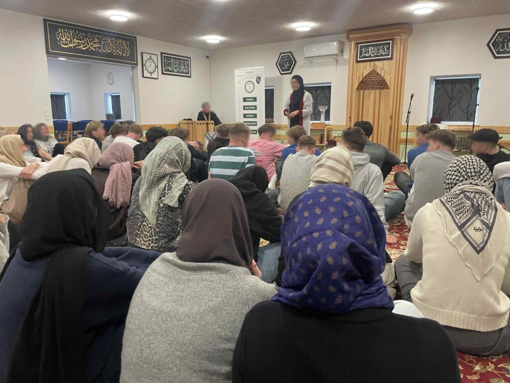 “Igen i år har alle religionshold på Randers Statsskole været på besøg hos Naza og Sema i den bosniske moske i Randers. De to kvinder er så gode til at fortælle levende og spændende om moskeen og deres liv som muslimer i Randers. Vi sætter stor pris på gæstfriheden.”
