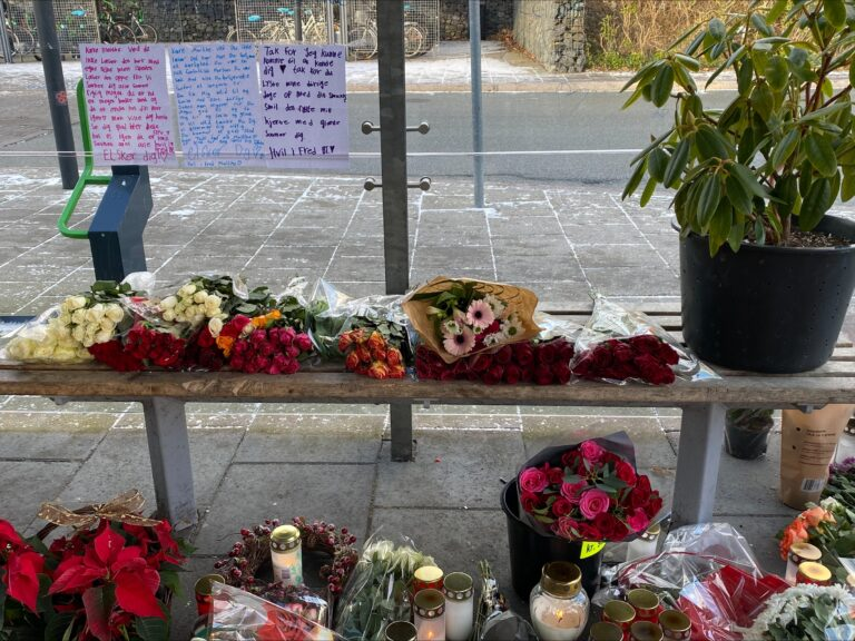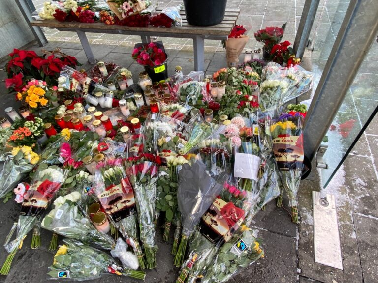 I dagene efter knivdrabet ankom mange til Grenaa Station, hvor blomsterhavet voksede.