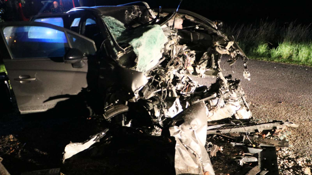 Ulykken er sket på Landsbækvej, skriver politiet. Her arbejder politiet tirsdag aften kort før klokken 22 stadig på stedet.