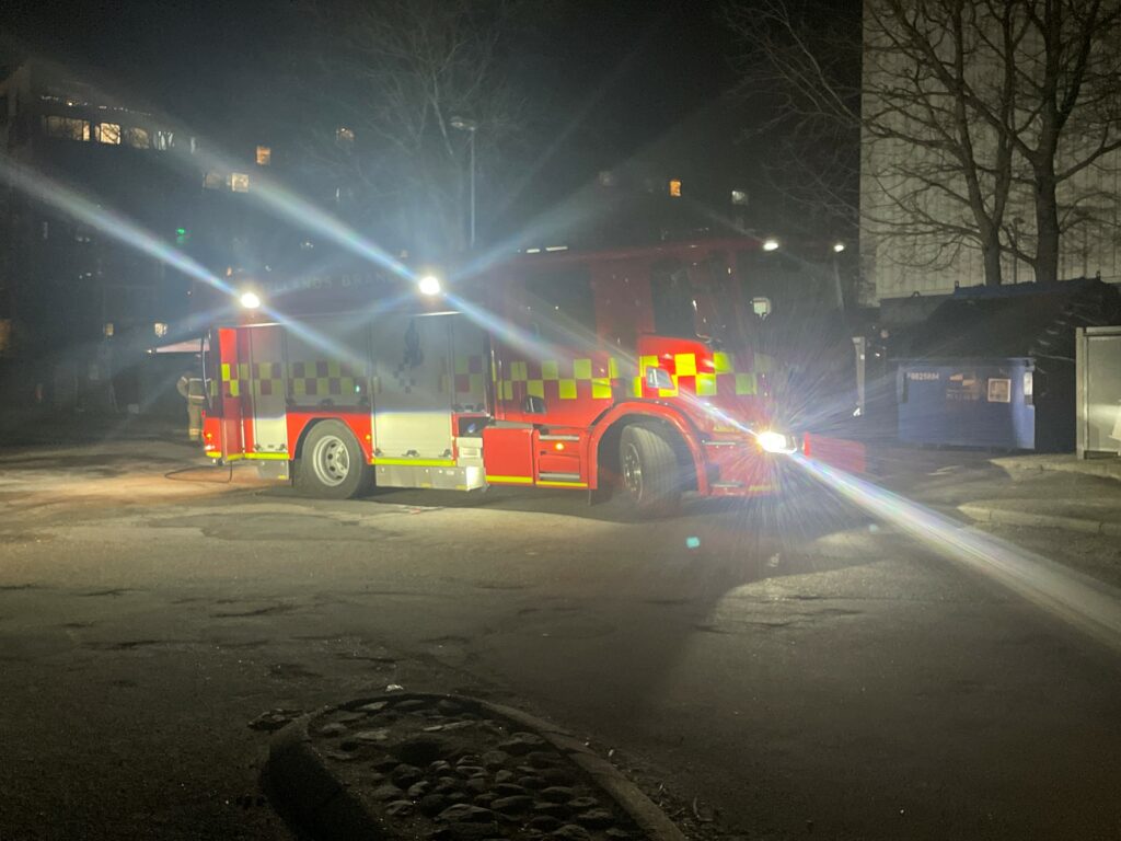Brandslangerne blev efterfølgende hevet ud af køretøjerne, og slukningsarbejdet påbegyndte.