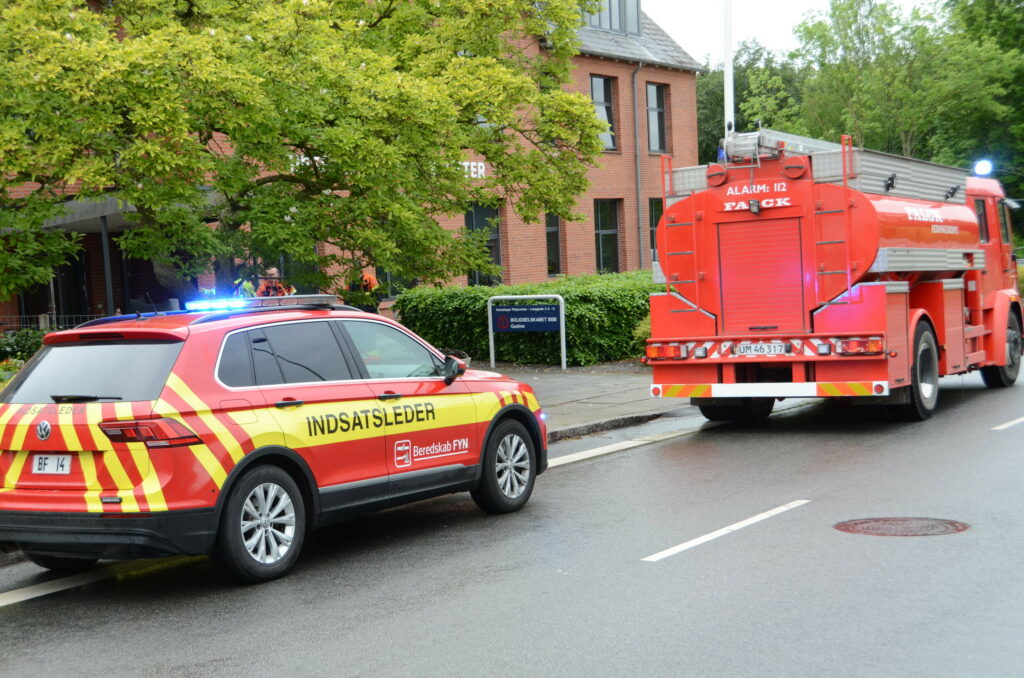 Brandvæsnet er mandag formiddag til stede på Langgade i Hesselager.