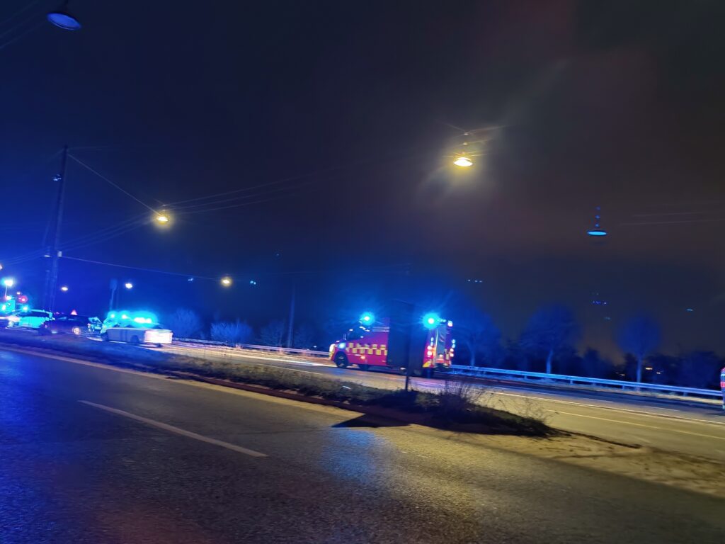 I forbindelse med uheldet har politiet spærret vejen i begge retninger.