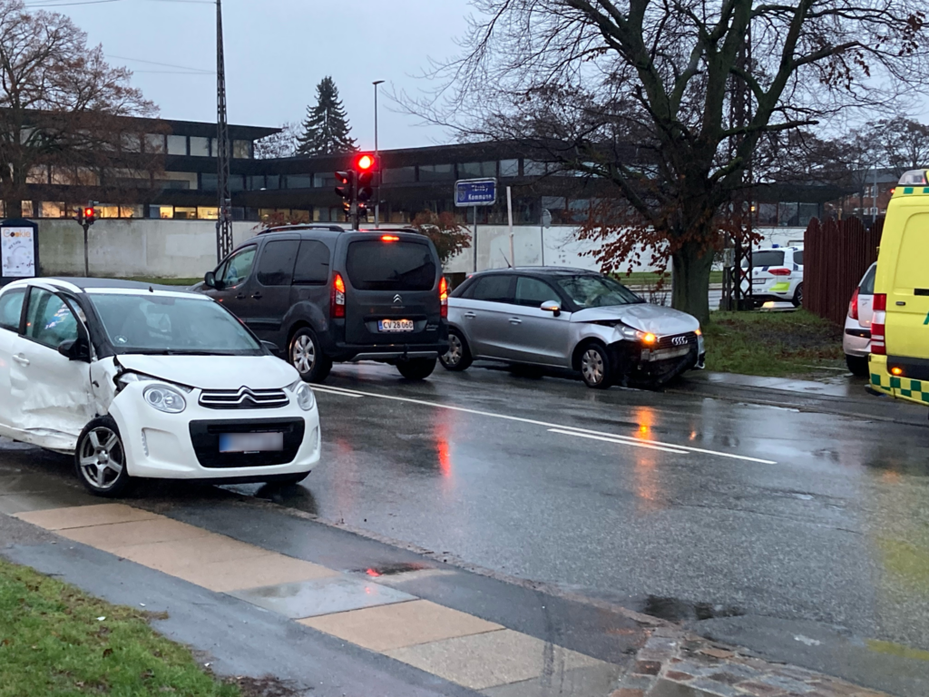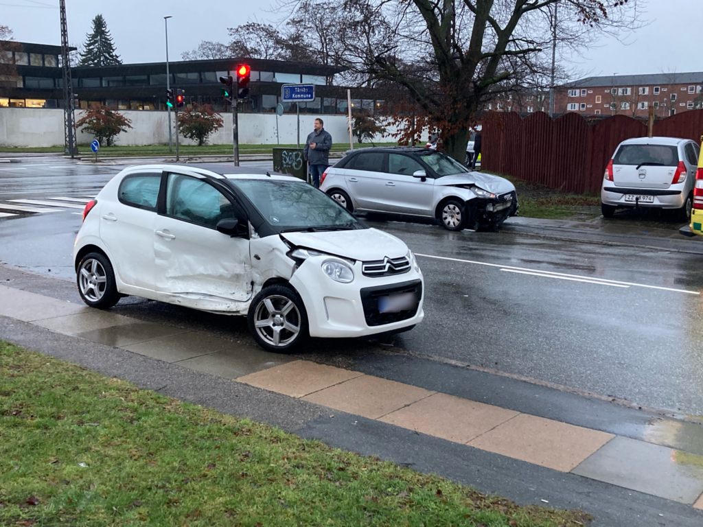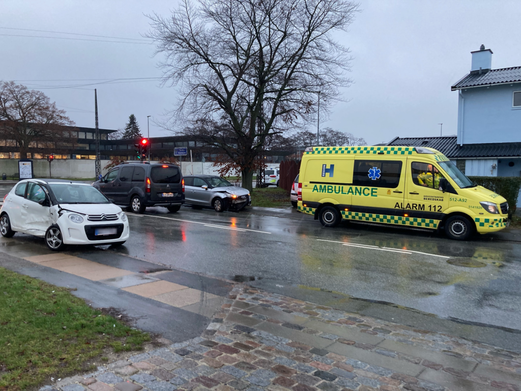 To biler er fredag eftermiddag kørt sammen i krydset mellem Bygrænsen og Englandsvej på Amager.