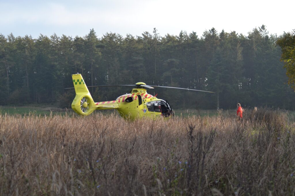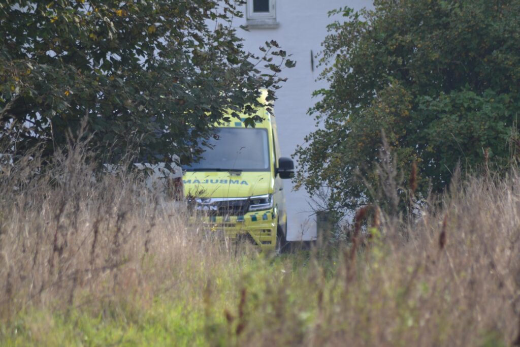 En ambulance samt lægehelikopter er lørdag eftermiddag til stede på Tanggårdsvej i Bjergby lidt udenfor Hjørring.