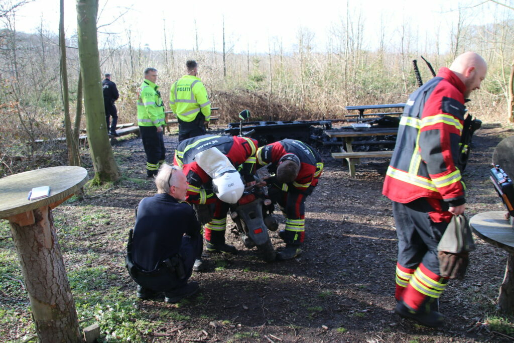 Søndag er politi samt brandvæsen til stede på Lucienvej i Faaborg, hvor en bålhytte er udbrændt.