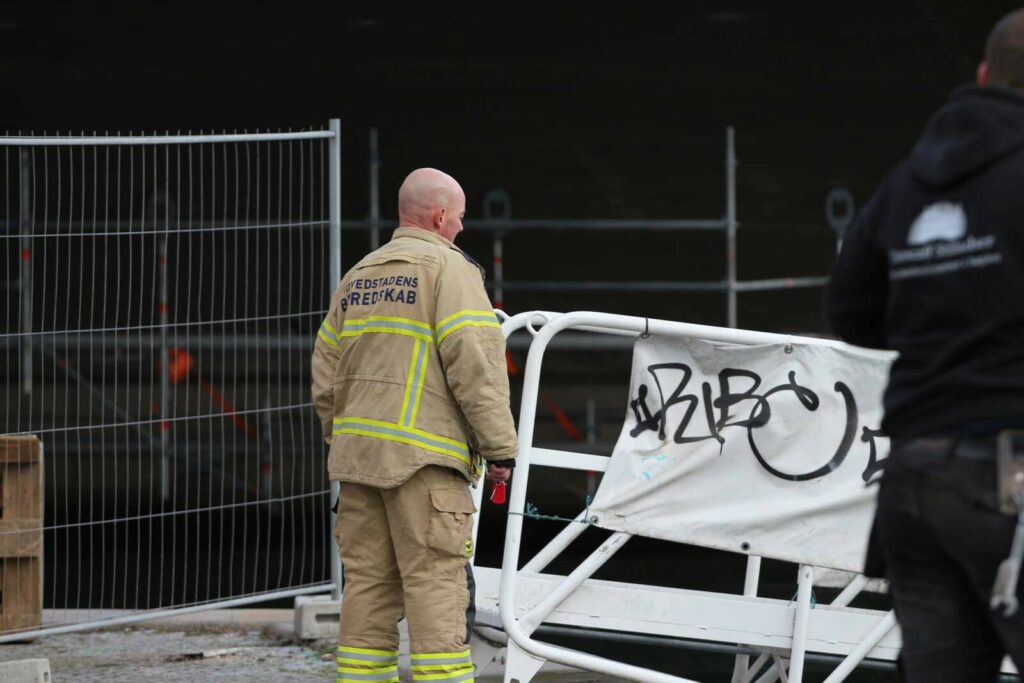 På stedet holder nu mindst en brandbil og en patruljevogn, mens brandmænd og betjente befinder sig ved vandkanten.