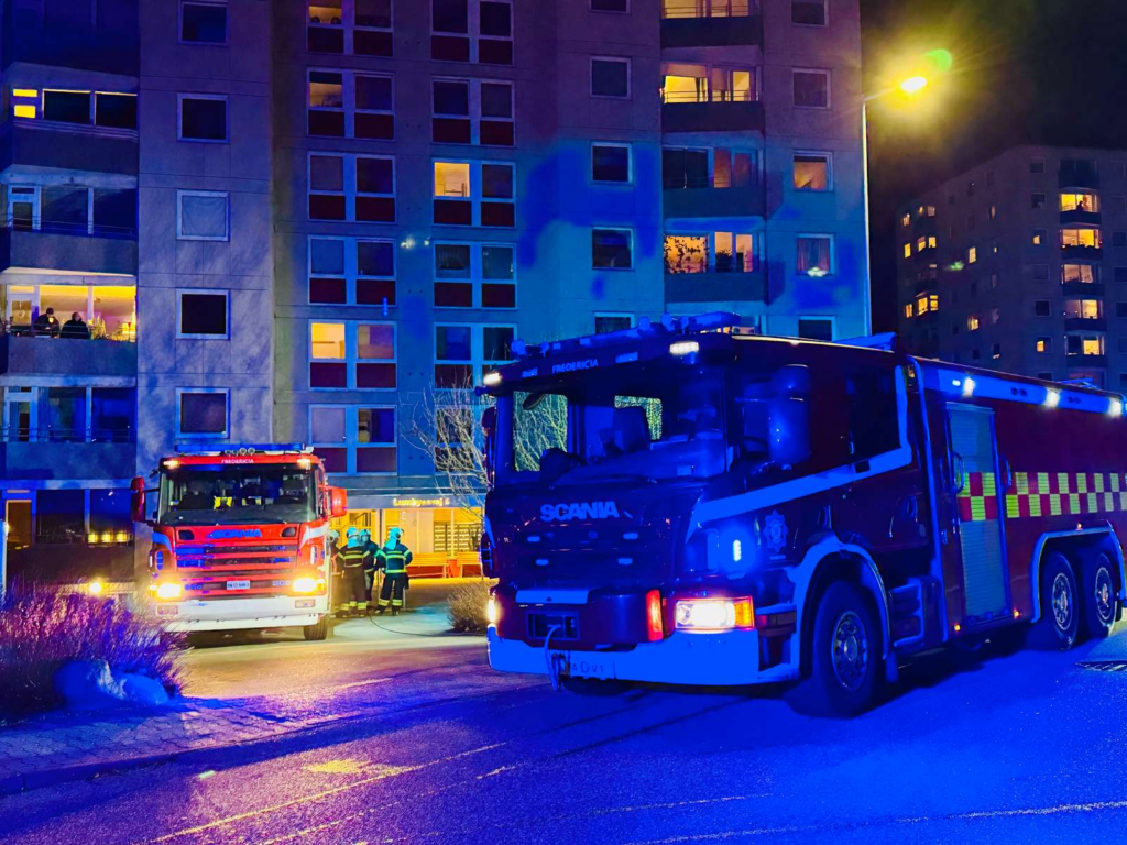 Vagtchefen kan ikke bekræfte, at branden er sket på tredje sal – men han fortæller, at anmeldelsen er indleveret af en beboer på sjette sal.
