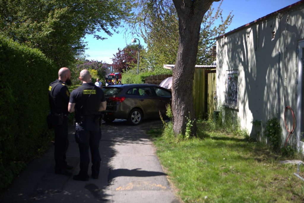 En bil bryder søndag eftermiddag i brand. Flammerne når at sprede sig, men beboere og brandvæsen reagerede hurtigt.