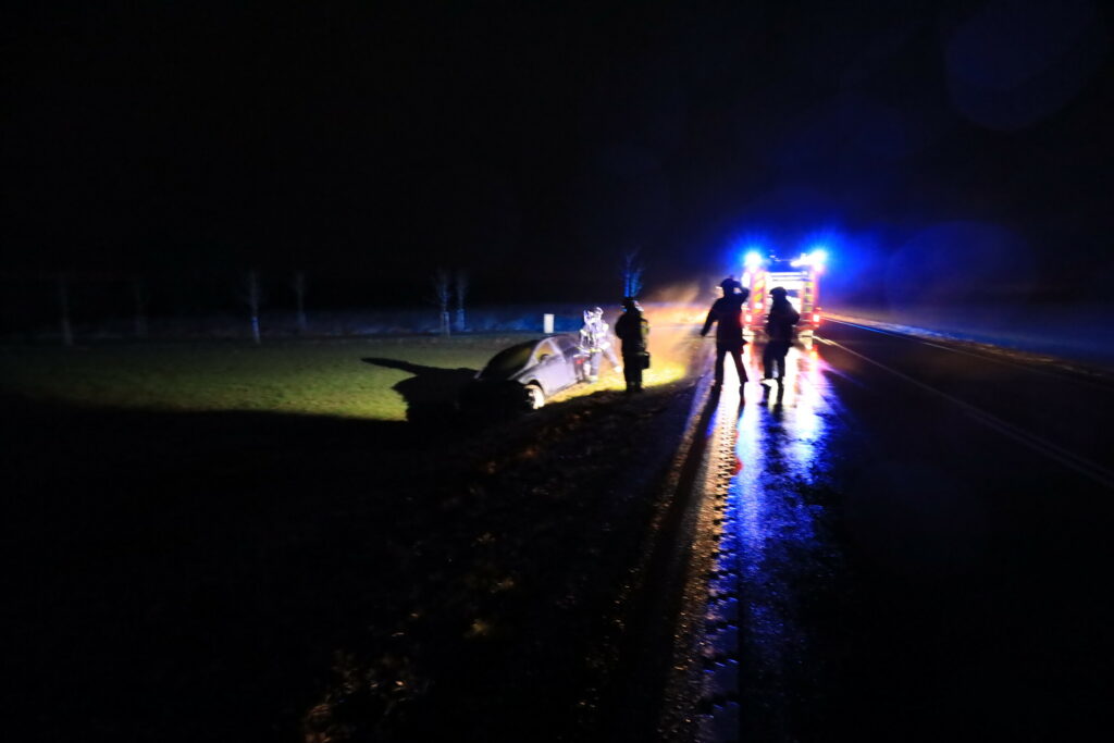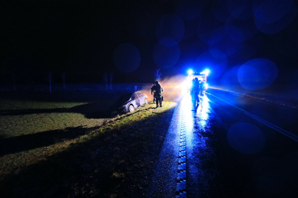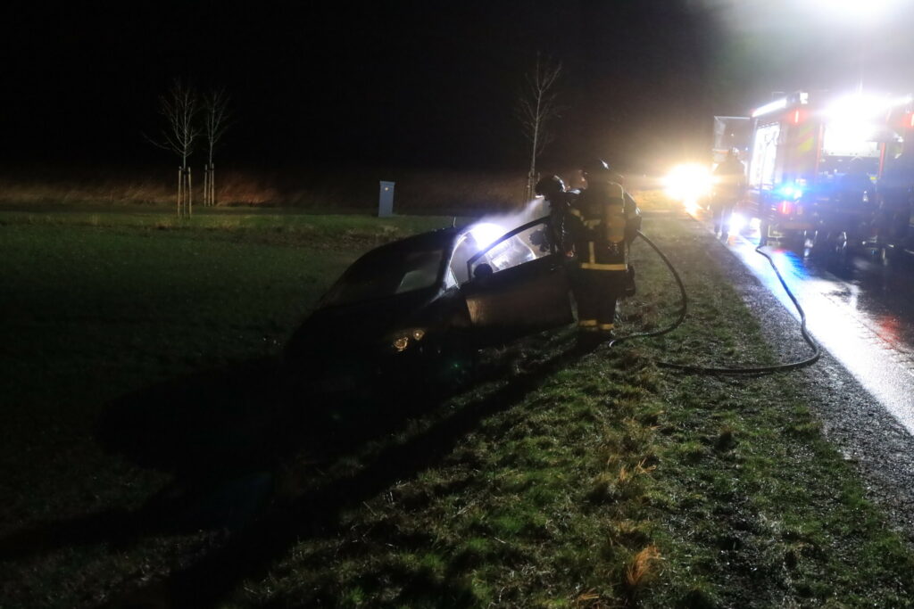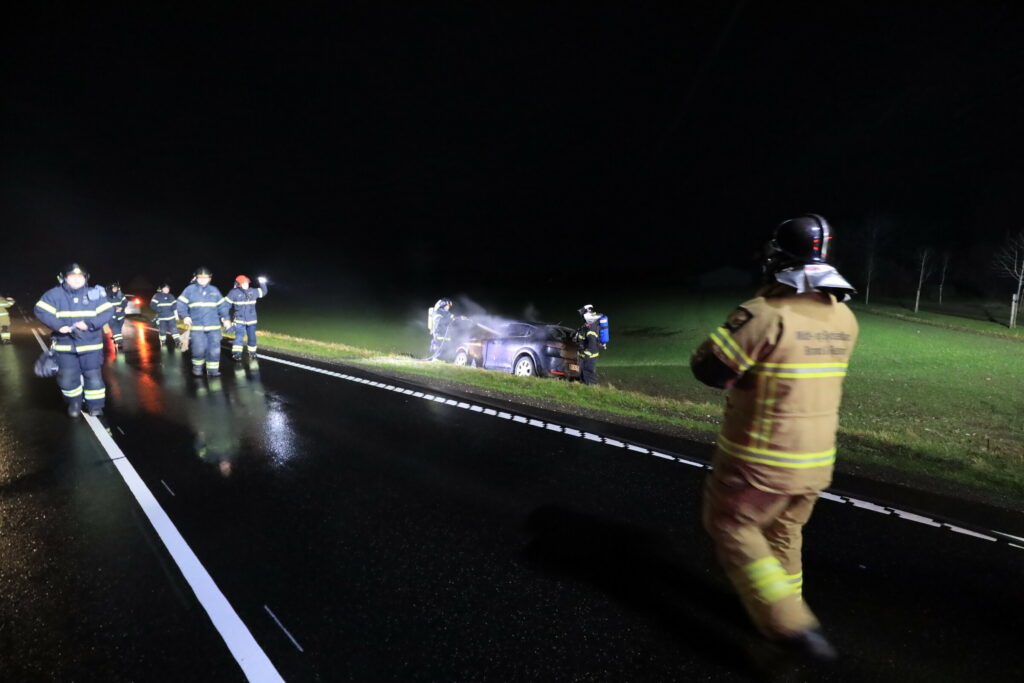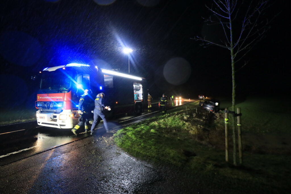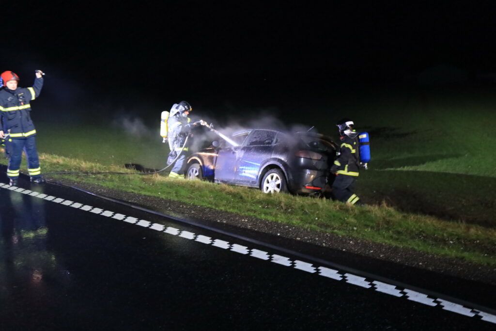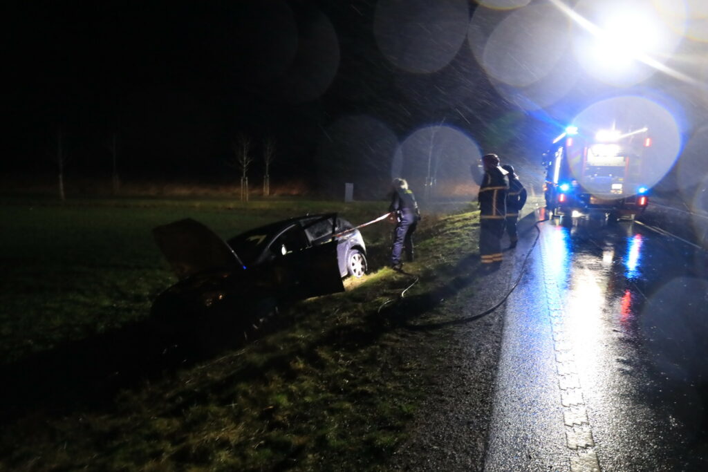Bilen var kørt i grøften hvor den derefter brød i brand.