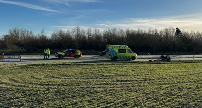 “Vi er i gang med at undersøge, hvad der er gået forud for ulykken, men der heldigvis ikke sket alvorlig skade”, lyder det fra vagtchefen.