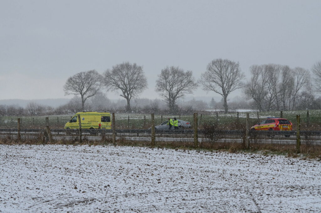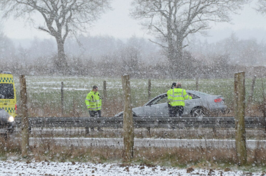 Vejdirektoratet oplyser, at uheldet forventes afsluttet klokken 12:15.