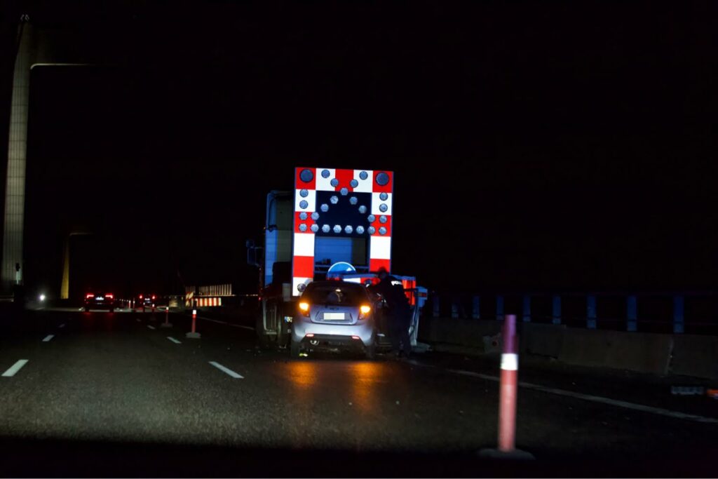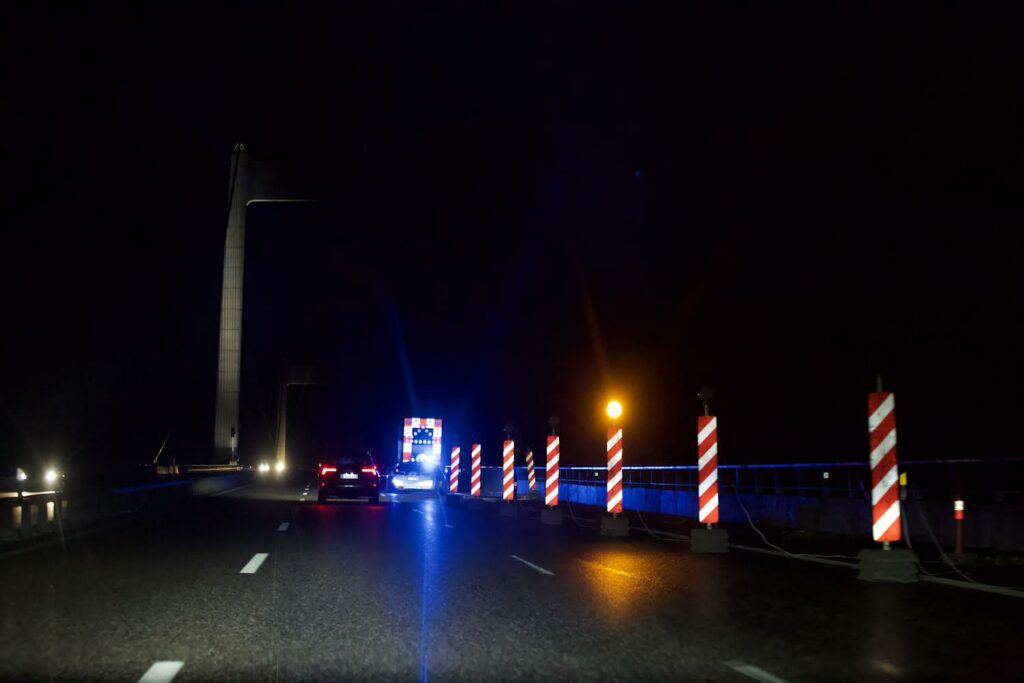 Lørdag aften er bilist kørt fonalt ind i en skiltevogn på Lillebæltsbroen.